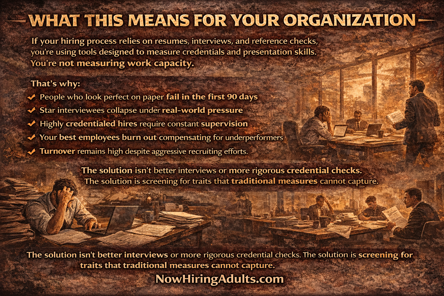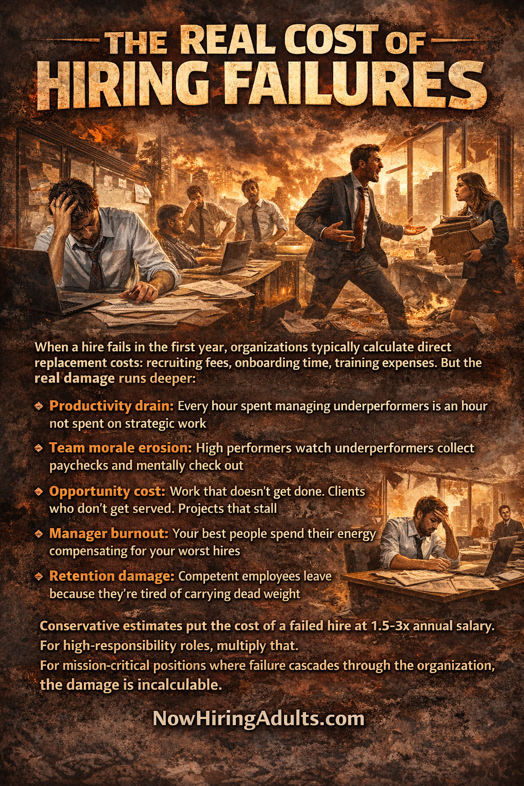 This is why 80-90% of hiring failures aren't about skills, experience, or credentials. They're about psychological maturity—the unmeasurable traits that determine whether someone can actually do the work.